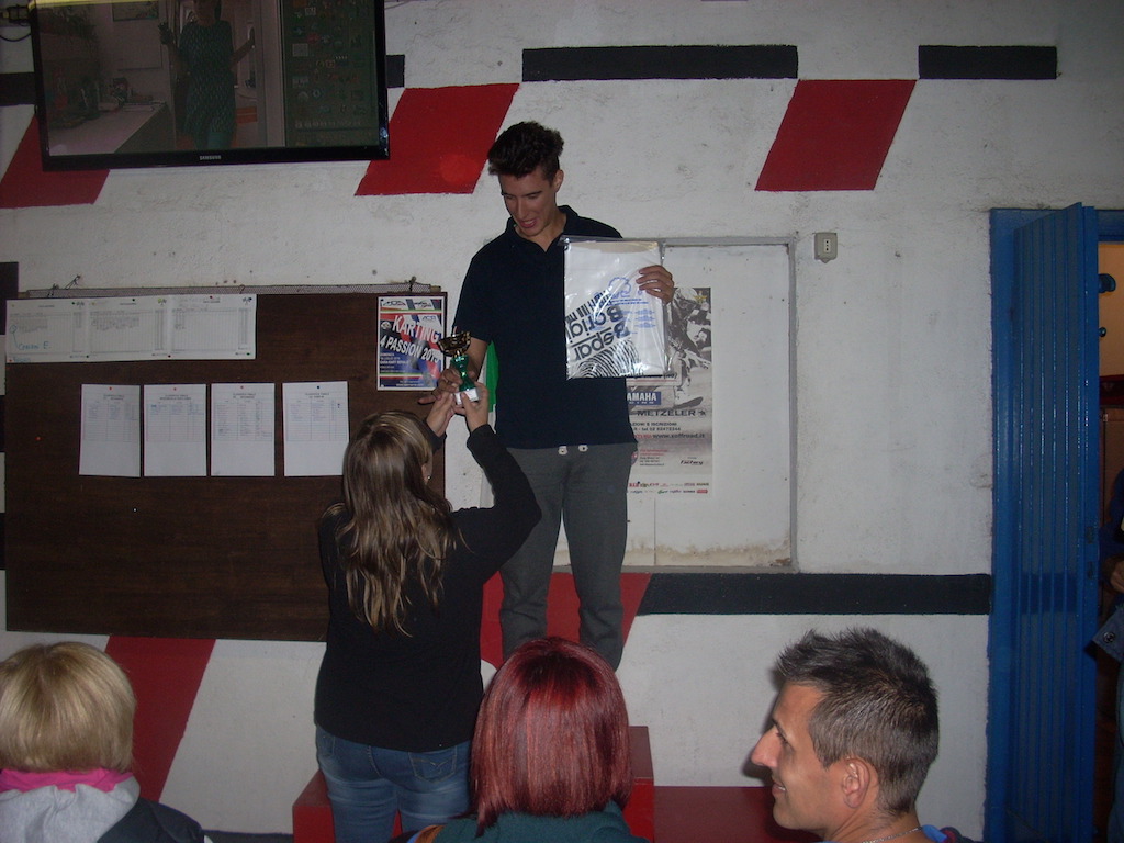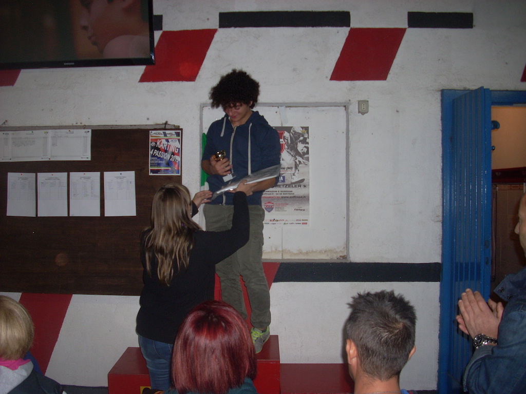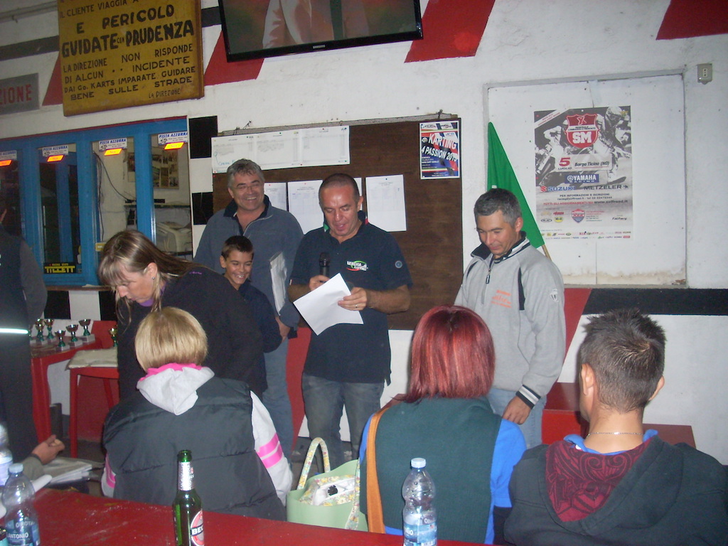 regionali, Castrovilli e Rondini. 22/11/2009 Una rappresentanza di nostri piloti sono andati in trasferta in terra ligure per il primo trofeo città di Sanremo; Cosimo Castrovilli è giunto secondo nella 100 TL dove Nidasio si è dovuto ritirare per incidente, mentre Fornara è giunto sesto nella 100 Italia dopo una collisione quando guidava il gruppo in finale. Foto 15/11/2009 Gara a Viverone domenica 15 Novembre che vede il dominio dei nostri piloti nella classe 100 Italia con Stefano Rondini primo e Samuele Fornara al secondo posto; gara tiratissima con Fornara che domina i tempi con la pole position e vince la prefinale ma dopo aver condotto tutta la finale all'ultimo giro viene superato da Stefano Rondini con una staccata al fulmicotone che non lascia scampo a Fornara che tenta di riprendersi la prima posizione ma il traguardo incombe e la gara si chiude con il bellissimo duello tra i nostri piloti con staccatissimi tutti gli altri. Ottima anche la 100 MTL con al secondo posto Rosso, terzo Castrovilli e quarto Nidasio che dopo tante gare sfortunate vede finalmente la bandiera a scacchi. 12/10/2009 Il pranzo sociale del Vaemenia K.C. si svolgerà