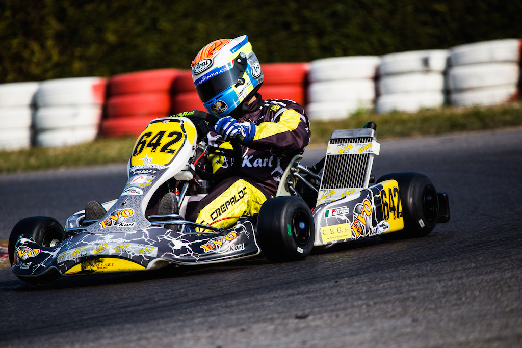 10/05/2015 Pista Azzurra, Jesolo Christian Crepaldi, alla prima apparizione su questa pista, vince la prefinale di categoria piazzandosi al sesto posto assoluto. In finale dopo un contatto alla prima curva conclude primo di X30 Master e ottavo assoluto. Esordio in 125 per Alessandro Uzzeni