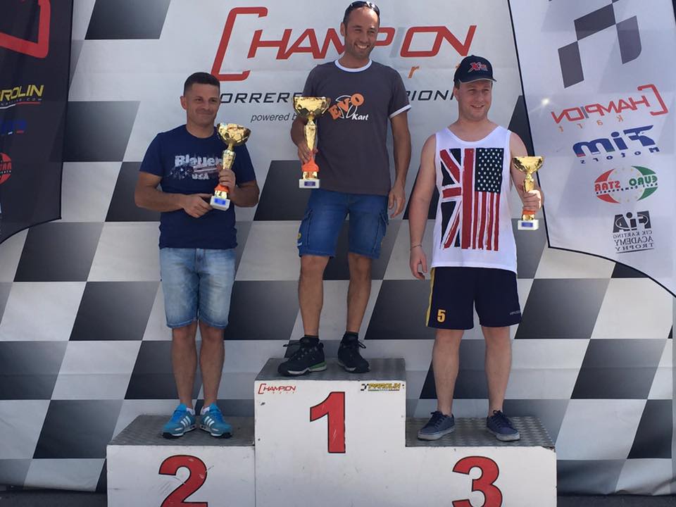 04/07/2015 X30 IAME Adria Christian Crepaldi, X30 Master: la gara si è tenuta in notturna, su un circuito ottimamente illuminato ma condizioni di pista molto difficili. In prefinale si piazza decimo in assoluta e secondo di Master, stesso risultato in finale dopo un contatto in partenza.